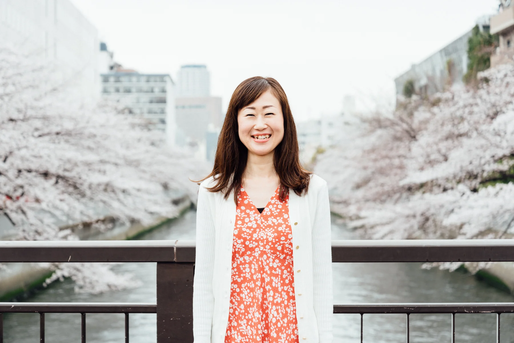 軽いプレッシャーを感じながら、いくつかのスポットを選ばせていただきました。 撮影は春でしたから、川沿いの桜は外せません。また、ご要望には入っていなかったものの、コーヒーの街と言われてますし、趣のあるオールプレス エスプレッソさんの壁面を背景に撮影。 「緑」ということで候補が多く悩みましたが、開放的で様々な顔を持つ木場公園を選びました。